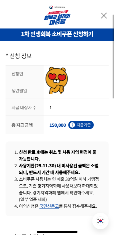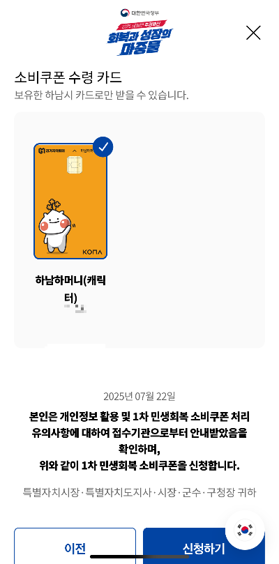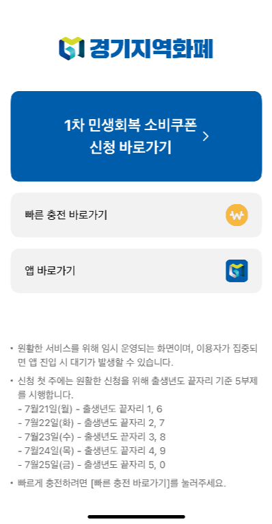 민생회복소비쿠폰 1차 신청방법(어플이용)