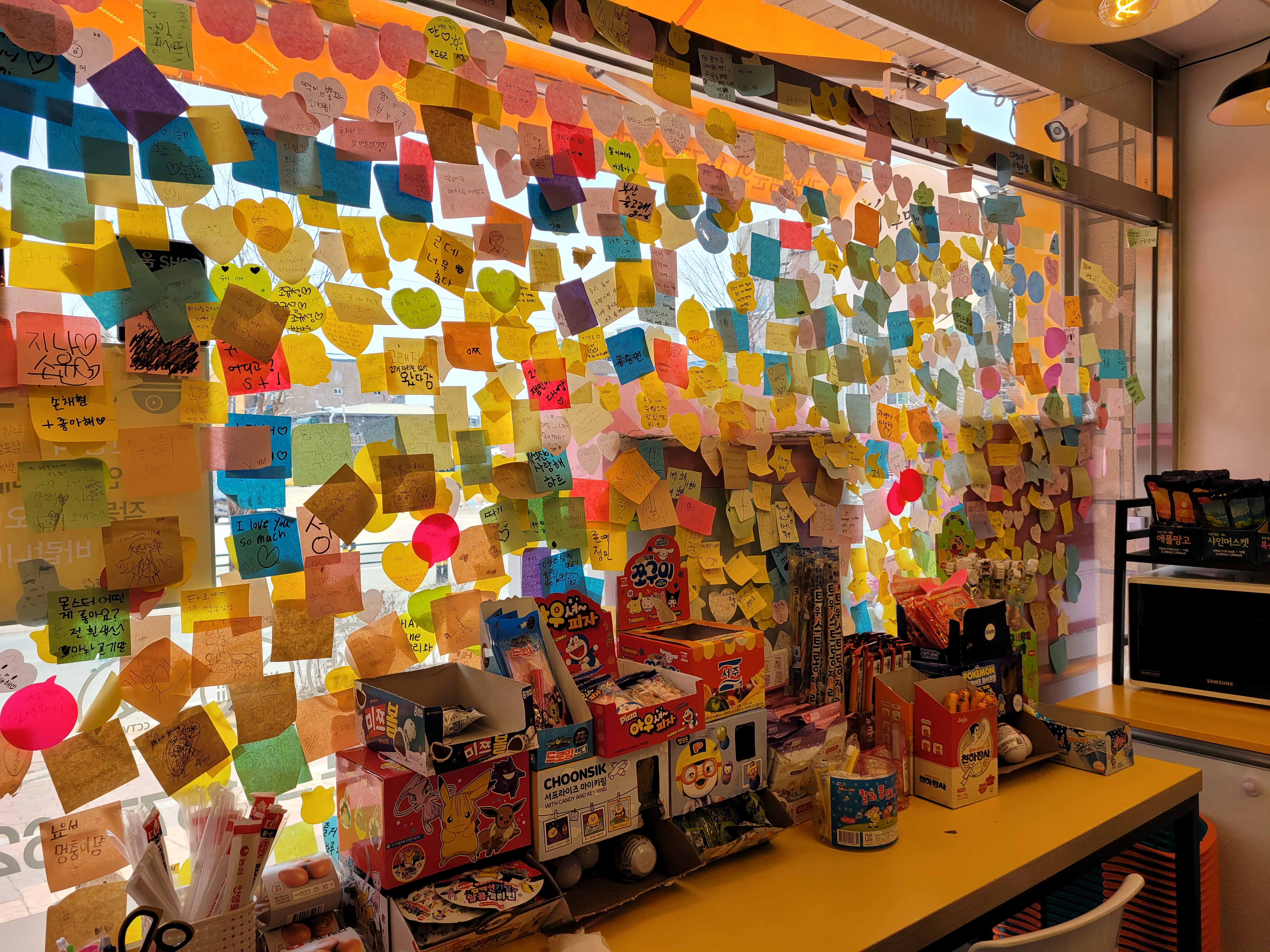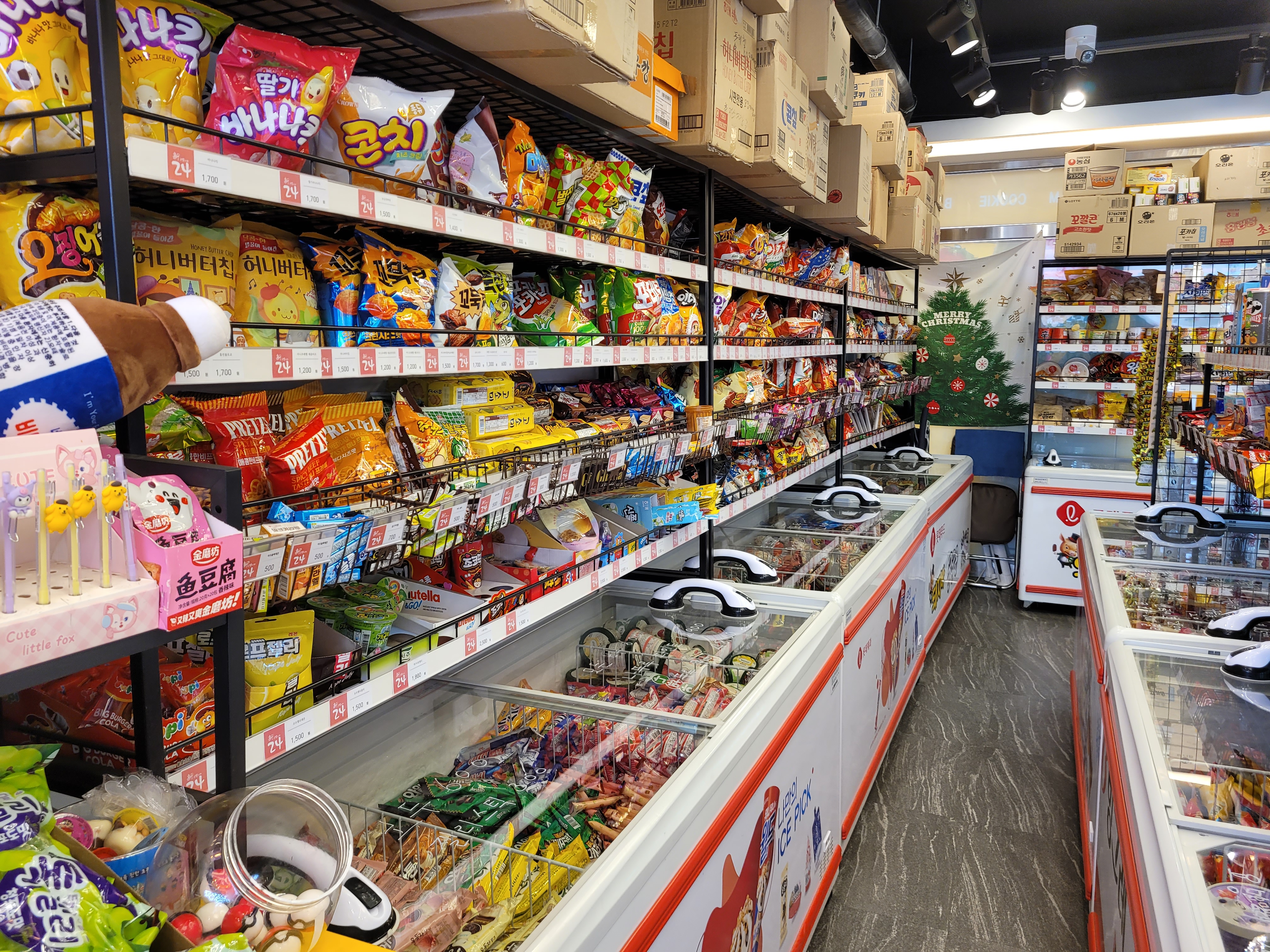 벽면 4면이 정말 많은 과자, 라면들로 가득 차 있었어요.