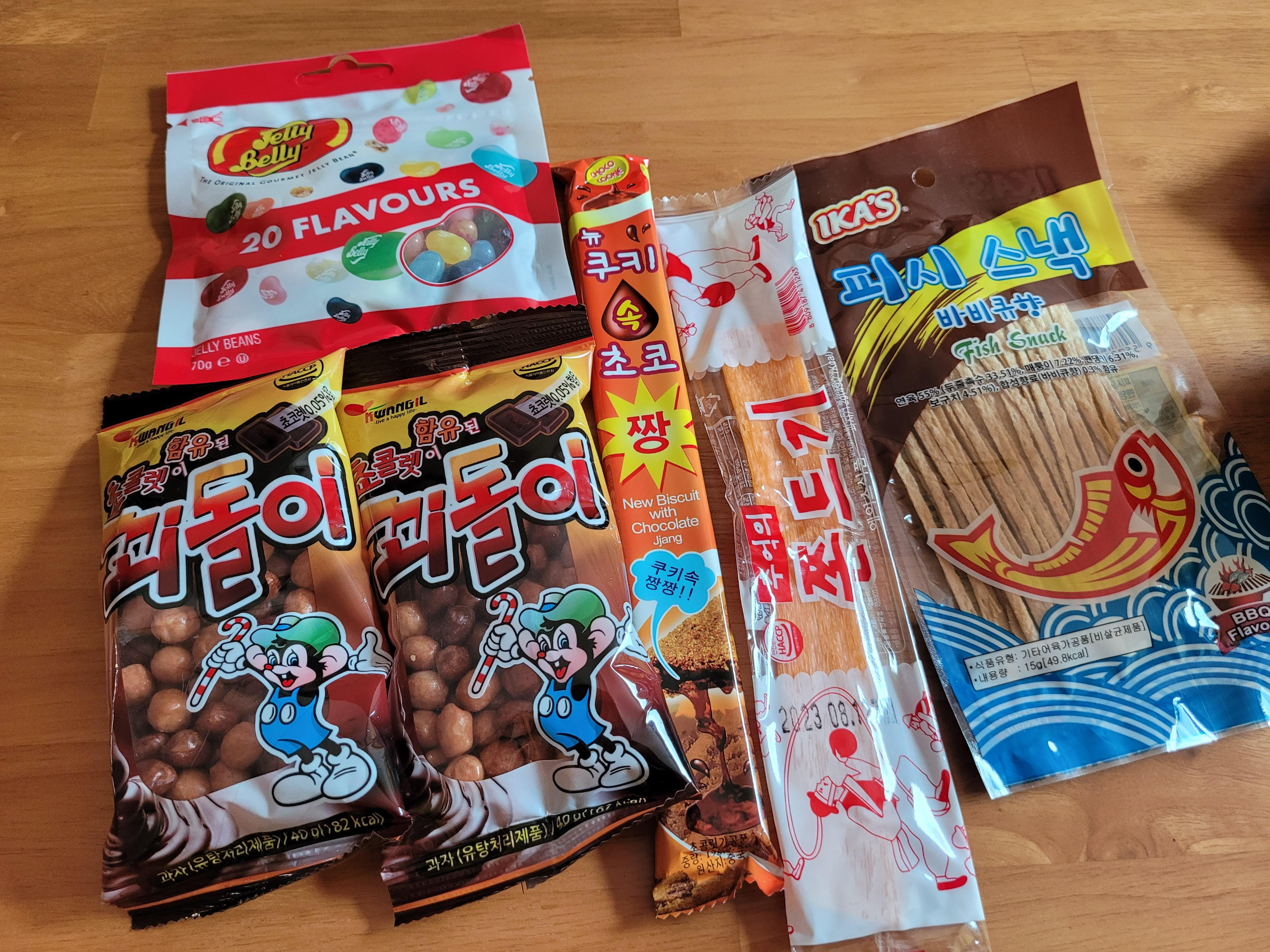 젤리와 꾀돌이는 딸내미 꺼고, 나머지 꾀돌이, 쿠키 속초코짱, 추억의 쫀드기, 피시스낵 바비큐향은 제 거입니다.