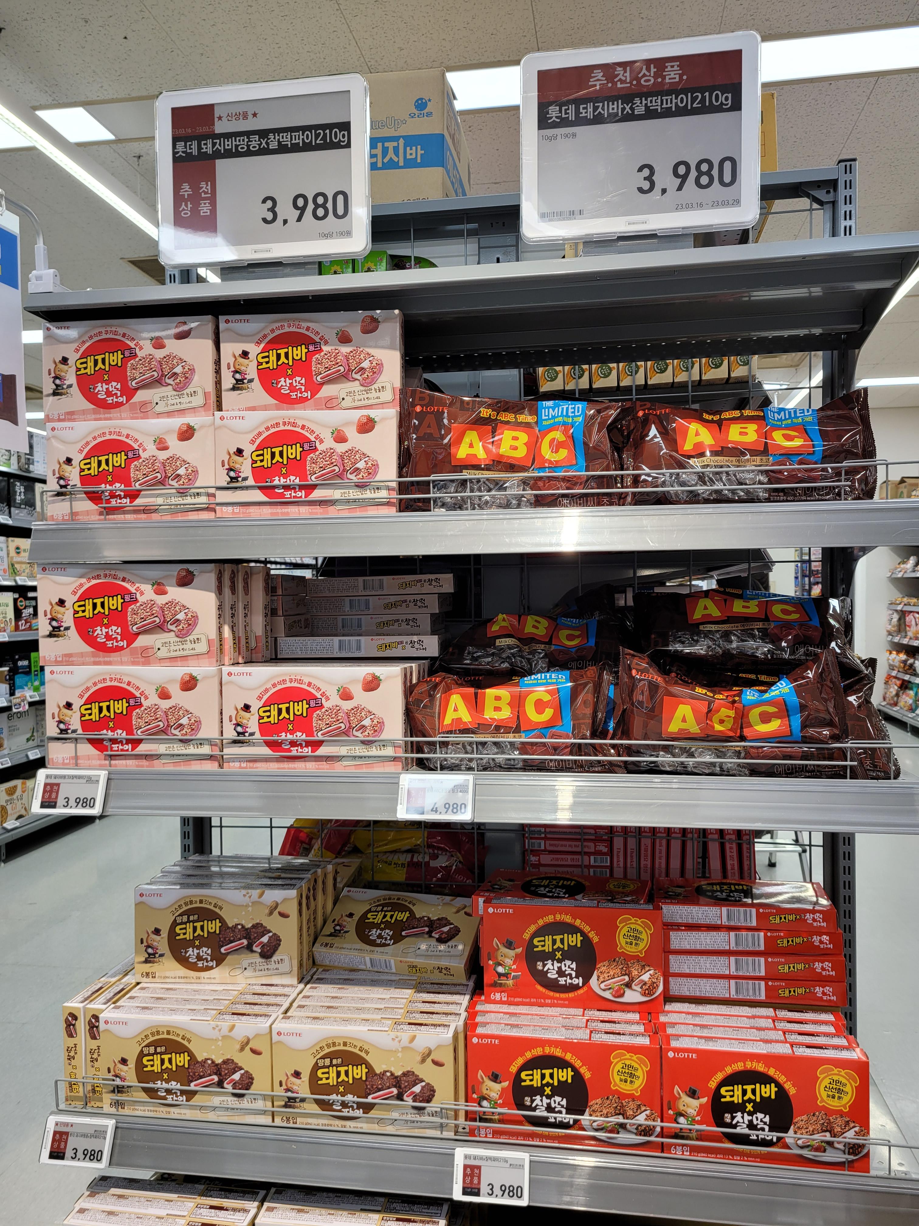 지난 포항여행 중 마트에 갔다가 발견한 돼지바와 찰떡파이의 콜라보 제품을 보았습니다. 기본 돼지바도있고, 돼지바 땅콩 찰떡파이도 있고, 핑크(딸기) 찰떡파이도 있고, 총 3종류가 있었습니다.